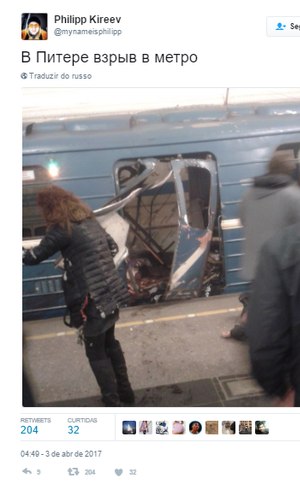 Uma explosão assustou os usuários do metrô de São Petersburgo, na Rússia, nesta segunda-feira (3) e deixou 10 mortos e dezenas feridos, segundo a agência Taass. Ao menos sete estações de metrô da cidade foram fechadas em decorrência do incidente.