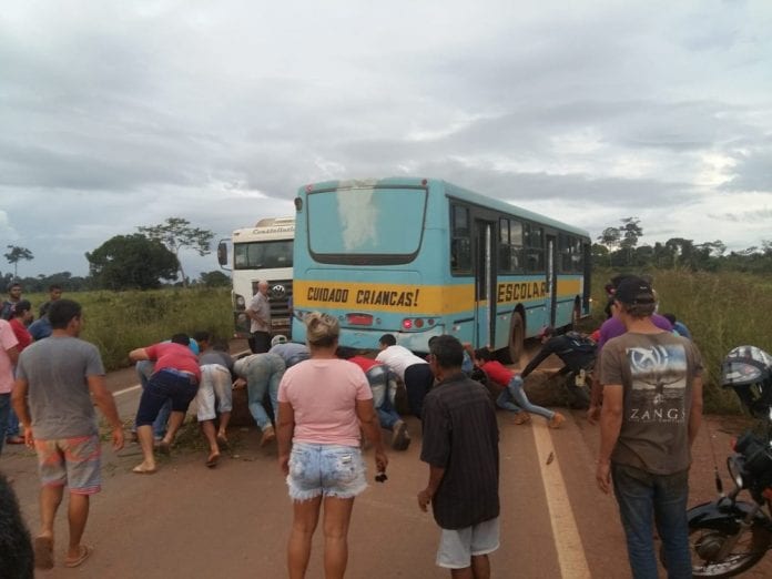 Segundo os manifestantes, a via só deve ser liberada após a presença de representantes do Governo de Rondônia.