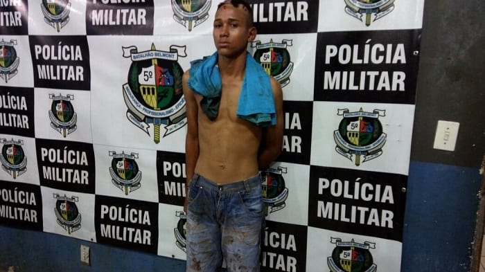 Rafael R. S. N. (18), foi capturado, amarrado e surrado por populares na manhã desta terça-feira (27), após praticar roubo em uma panificadora na Rua Pernambuco, bairro Três Marias, zona Leste de Porto Velho.